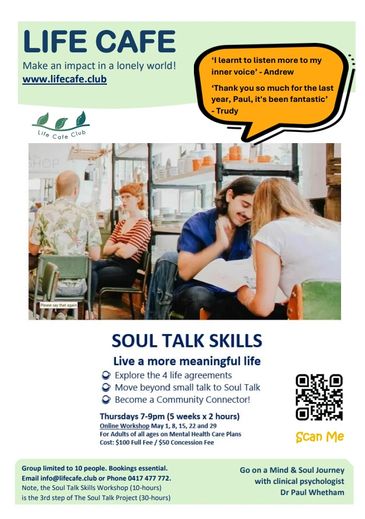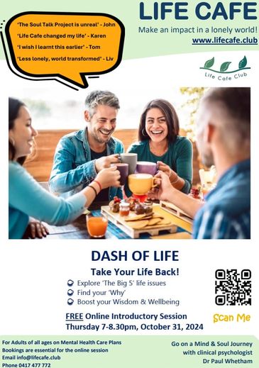 Bookings are essential. Register your interest with Life Cafe Club 0417 477 772 or email info@lifecafe.club