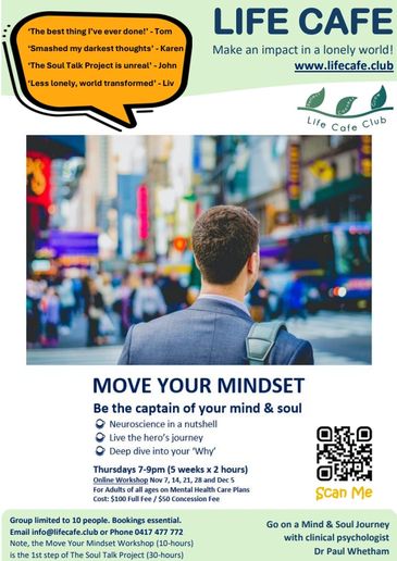 *Note, You'll need a current Mental Health Care Plan from your GP and a letter of referral to Dr Paul Whetham first before you attend a workshop topic. Note: only one topic (10hrs) per calendar year is covered by Medicare.